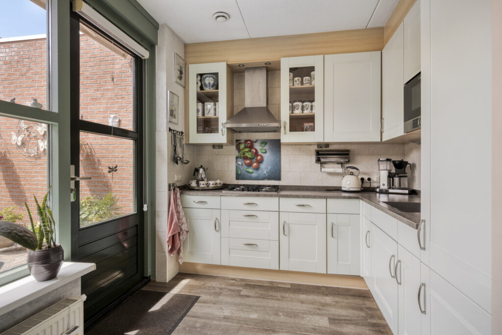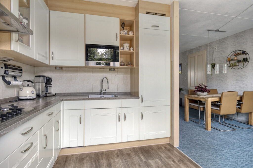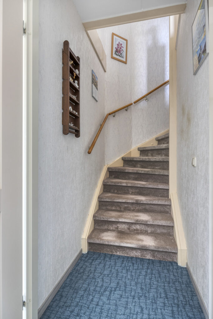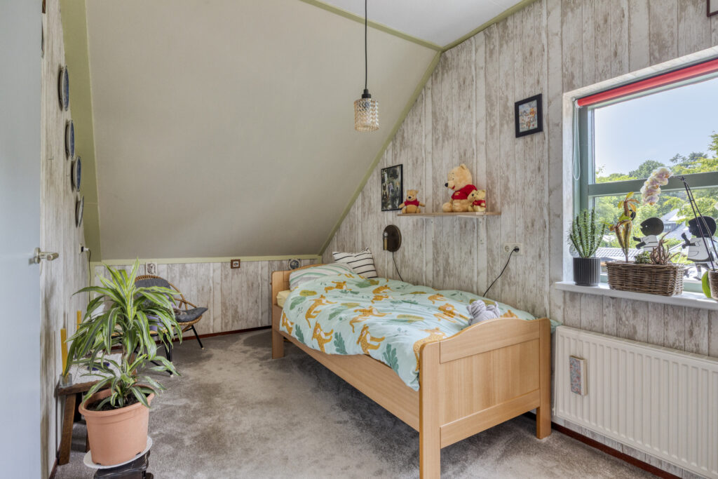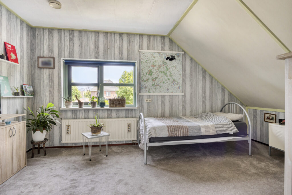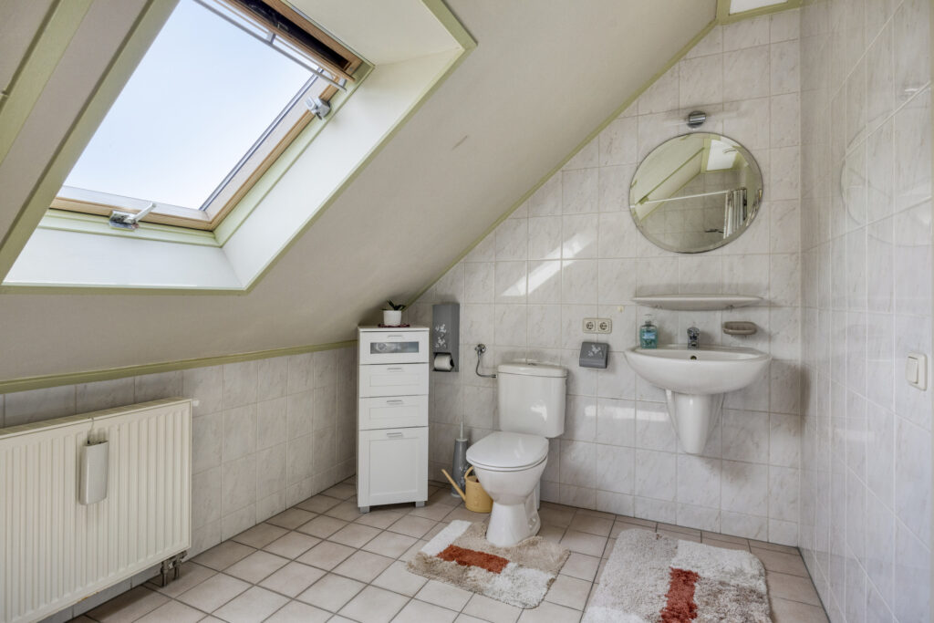 De lichte woonkamer van 30 m² sluit aan op een moderne keuken met volop werk- en opbergruimte. Op de begane grond vind je daarnaast een slaapkamer en een complete badkamer met douche, toilet en wastafel – perfect voor wie gelijkvloers wil wonen. Boven zijn nog twee slaapkamers, een extra badkamer en zolder.