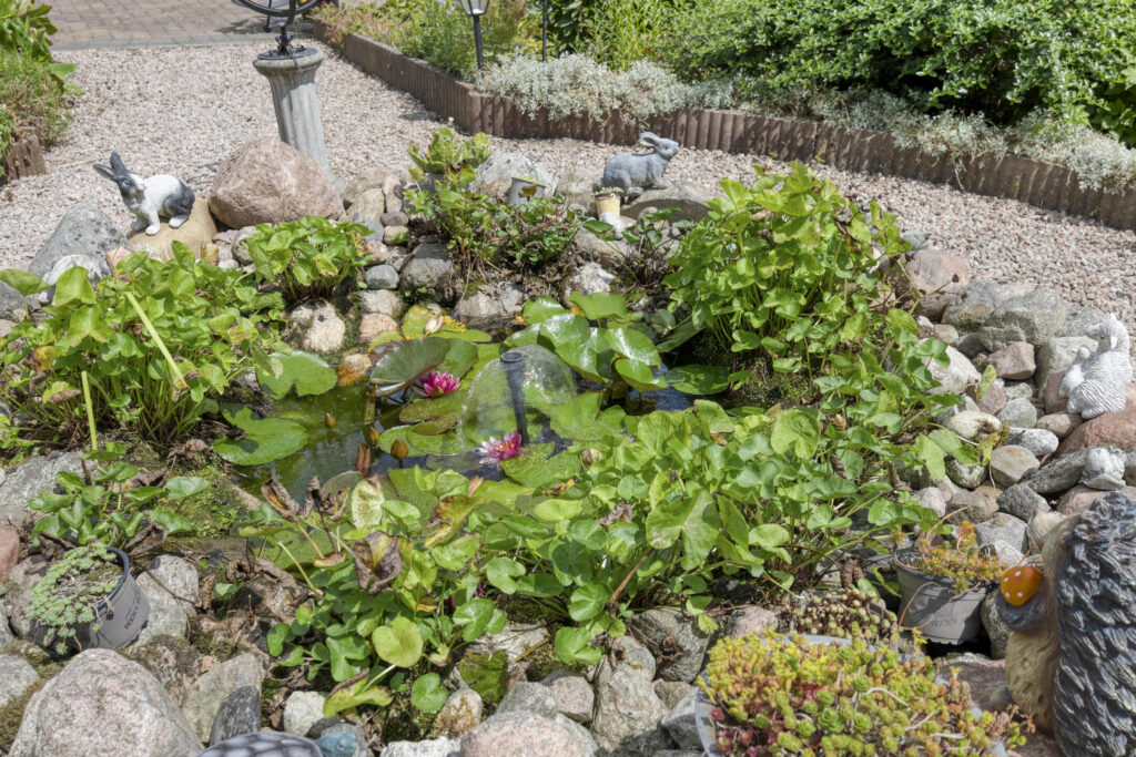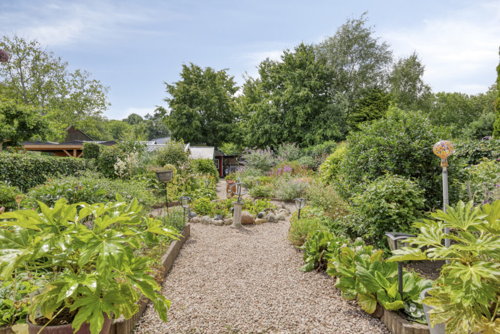 – Voor- en achtertuin, garage + tuinhuis