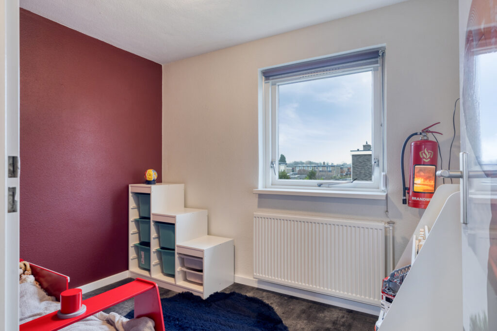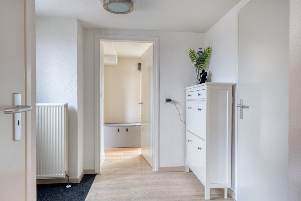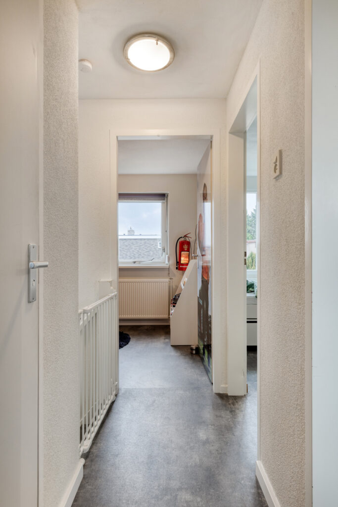 Overloop, toilet met fonteintje, vier slaapkamers; ideaal voor starters, een gezin of voor thuiswerkplekken.