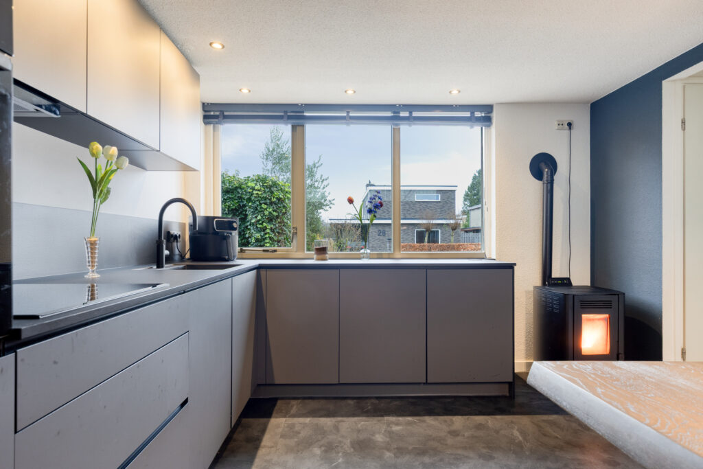 Lichte woonkamer, moderne woonkeuken (2024, voorzien van Quooker) met palletkachel, moderne badkamer met vloerverwarming, bijkeuken en toilet.