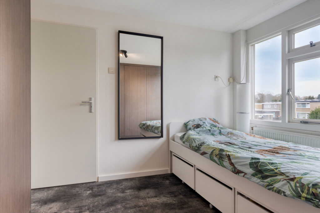 De woning telt in totaal zes kamers, waaronder vier slaapkamers, verdeeld over twee verdiepingen.