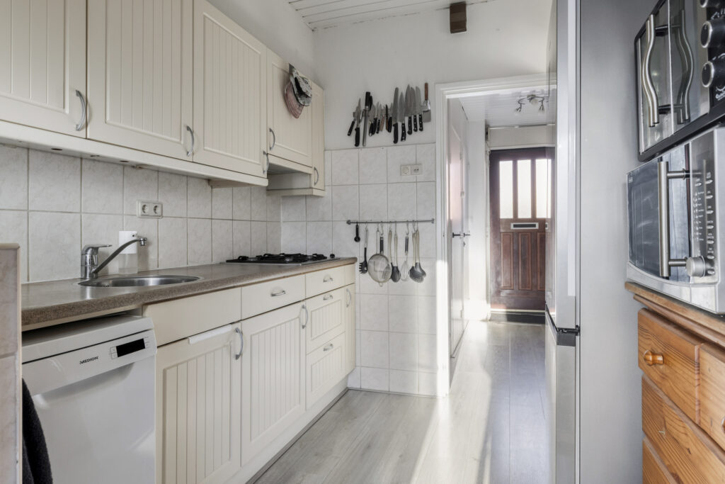 Begane grond met een lichte woonkamer met een doorloop naar de keuken, hal, toilet en bijkeuken. Op de eerste verdieping bevinden zich drie slaapkamers en de badkamer, voorzien van douche en wastafel.