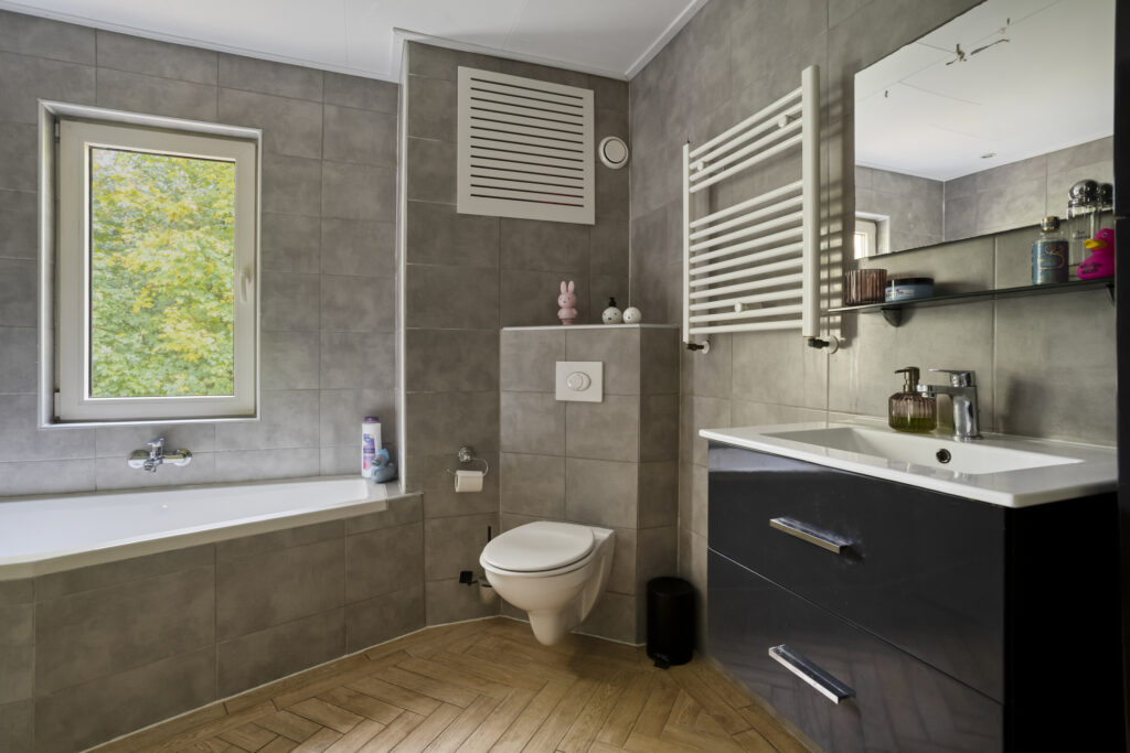 De eerste verdieping biedt drie slaapkamers en een tweede, ruime badkamer (2021) met ligbad, toilet, wastafel en mechanische ventilatie.