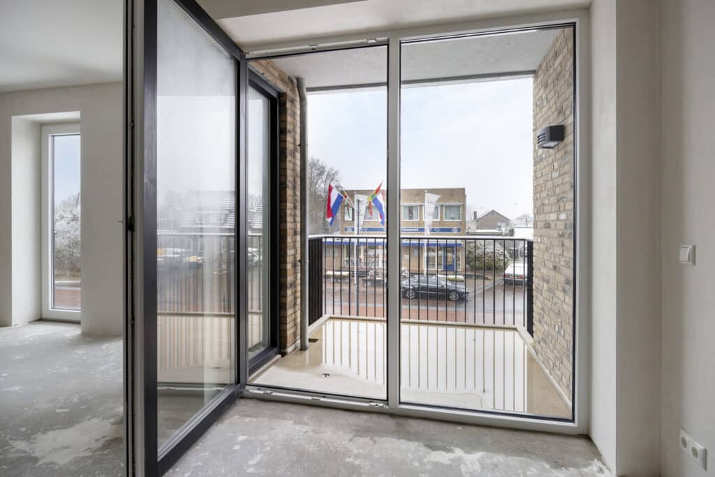 Vanuit de woonkamer is het balkon aan de voorzijde bereikbaar — een fijne plek om buiten te zitten.