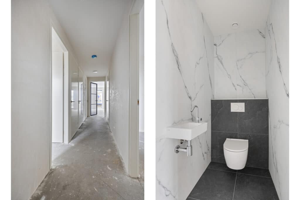 De woning is behangklaar opgeleverd en voorzien van complete badkamer, toilet en keuken. De vloeren zijn nog niet afgewerkt, waardoor u deze geheel naar eigen smaak kunt realiseren en het appartement uw persoonlijke uitstraling kunt geven.