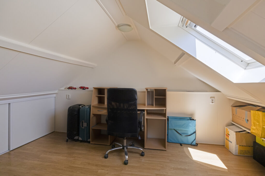 De tweede verdieping beschikt over een vierde slaapkamer en een ruimte ideaal als kantoor, hobbyruimte of extra berging te gebruiken.