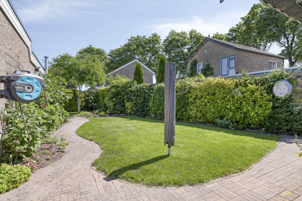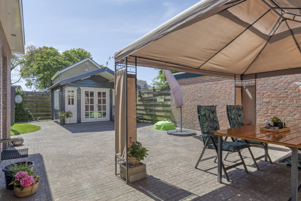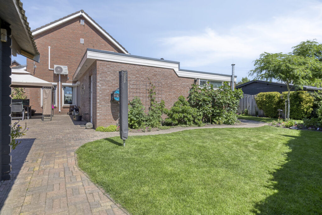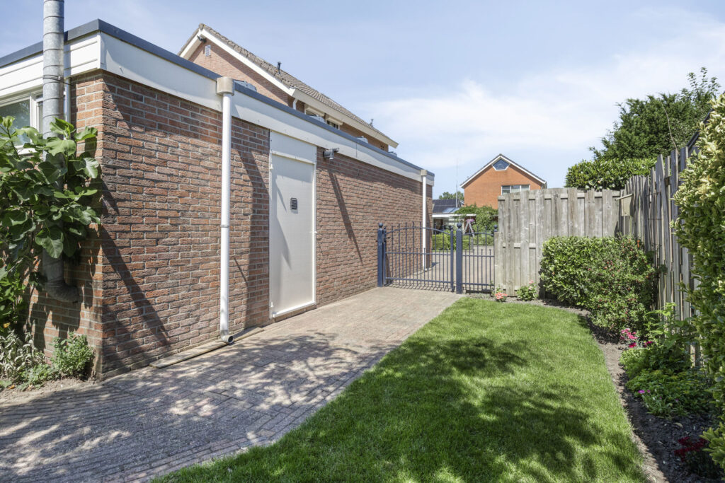 De woning heeft een ruime, zonnige tuin op het zuiden. Het perceel van ca. 456 m² biedt volop mogelijkheden om buiten te leven en te genieten van privacy. Verder zijn er een stenen garage, een houten schuur en parkeergelegenheid op eigen terrein.